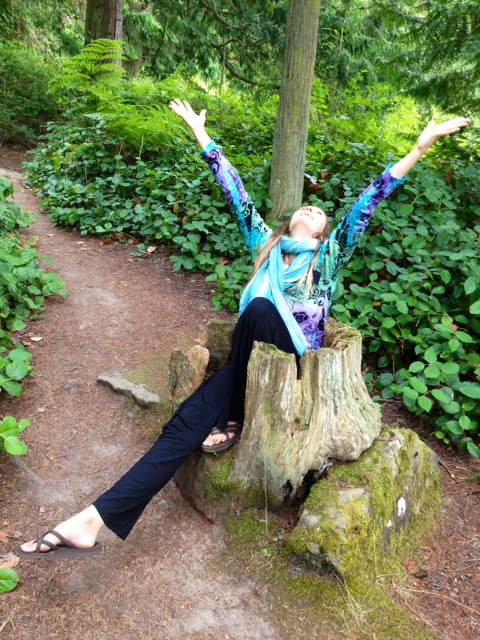 I’ll close this travel journal entry with one of my favorite photos, taken by Giacinta. Here I am in my favorite place, in the forest, becoming One with everything around me. There is no place I would rather be, truly!